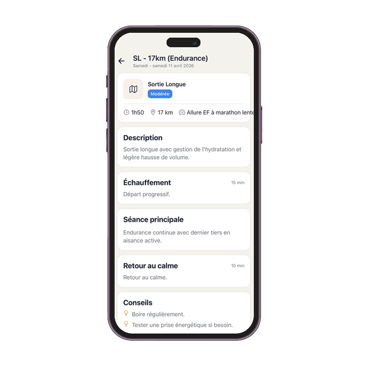 Pendant tes entraînements, sorties longues et compétitions, tu sais exactement quoi faire :