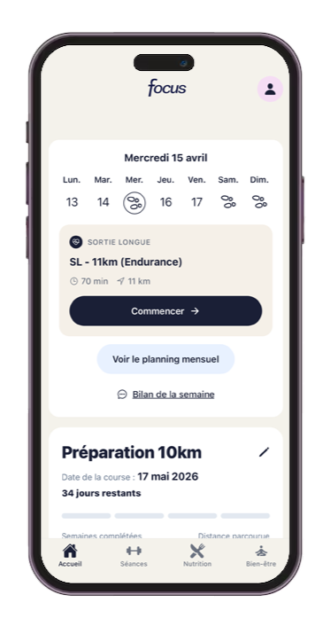 Focus aligne ton entraînement, ton alimentation et ton mental pour une progression enfin cohérente, personnalisée et durable.